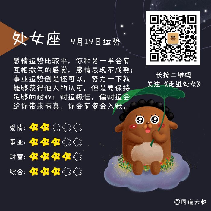 9月19日十二星座运势分析 同道大叔微信公众号文章